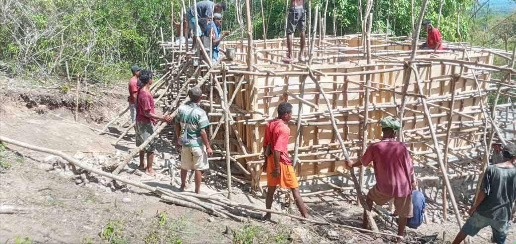 Ket Foto : Nampak masyarakat Ello sedang bergotong royong mengerjakan bak penampungan air