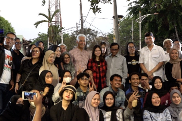 BERITA CALEG – Calon Presiden yang diusung PDI Perjuangan Ganjar Pranowo dan Calon Wakil Presiden Mahfud MD, menggelar dialog dengan pekerja kreatif dan Gen Z di Kala di Kalijaga, Jakarta, Senin (23/10). Sejumlah pekerja seni dan budayawan mengusulkan sejumlah hal yang dijawab pasangan itu sejumlah rencana kerja mereka jika memenangkan Pemilihan Presiden 2024 mendatang. (Sanya Susanti /Andi Bagasela/Nusantara Mulkan)
