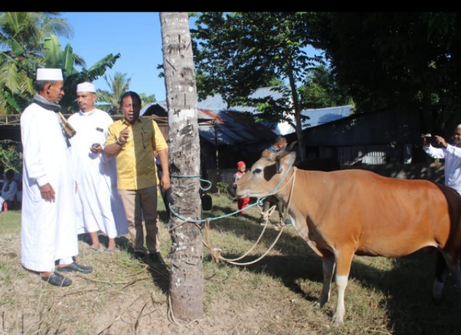 Selain itu Pj. Bupati Alexon Lumba menyampaikan bahwa penjabat Gubernur NTT, Ayodhia Kalake juga memberikan hewan kurban berupa satu ekor sapi kepada Umat Muslim Kabupaten Kupang yang ada di Desa Tablolong, Kecamatan Kupang Barat.