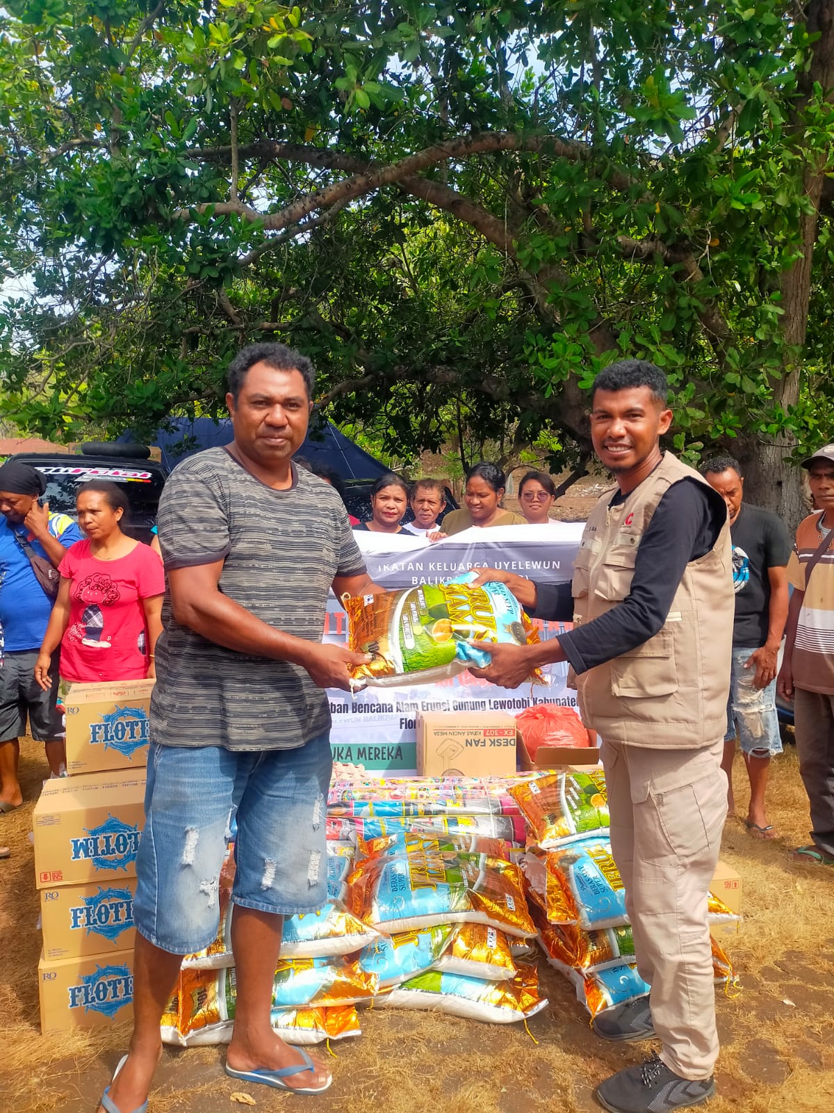 Dalam penyaluran nya beliau menyampaikan ” bantuan ini sebagai bentuk kepedulian dari ikatan keluarga uyelewun balikpapan dalam menyalurkannya langsung kepada para penyintas di lokasi pos pengungsiann mandiri yang didalamnya juga banyak keluarga kita dari lembata.