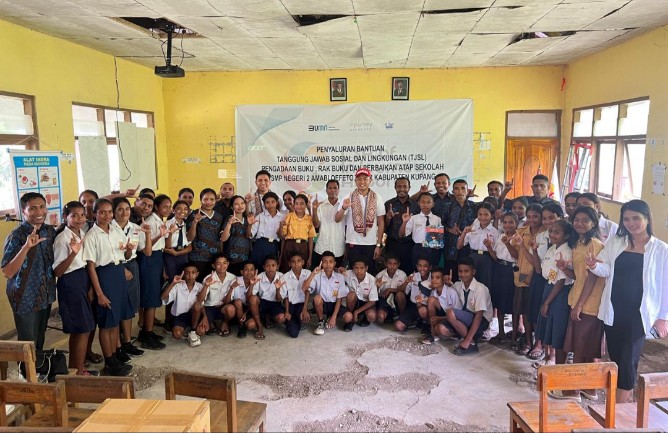 KupangOnline.Com– PT Angkasa Pura Indonesia Kantor Cabang Bandara El Tari Kupang bersama InJourney menyalurkan sejumlah bantuan untuk peningkatan pendidikan di SMP Negeri 2 Amabi Oefeto Timur, Kabupaten Kupang, Provinsi NTT yang terletak di pedalaman.