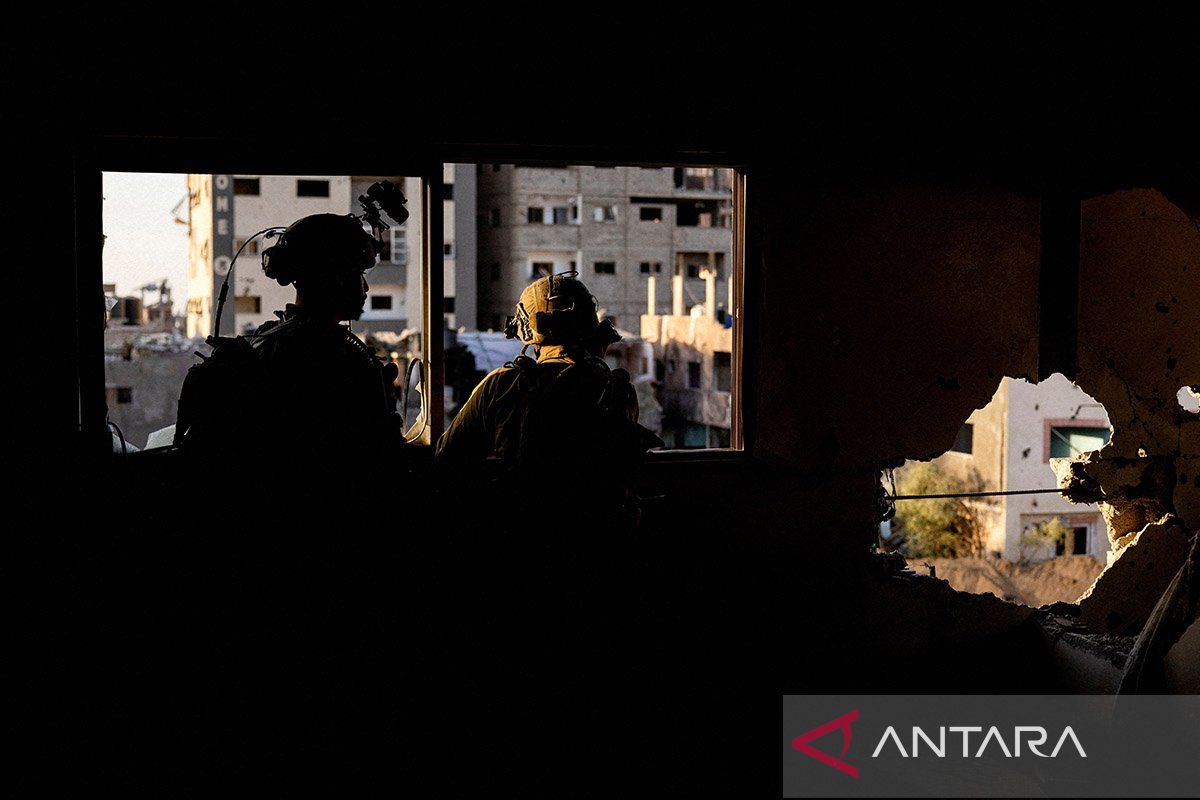 Tentara Israel memantau situasi dari sebuah gedung yang telah porak poranda ketika invasi darat di Jalur Gaza Utara, Palestina, Rabu (8/11/2023). Pertempuran antara pasukan Israel dengan kelompok pejuang Palestina Hamas terus berkecamuk, menyebabkan ribuan warga yang tinggal di kota itu mengungsi ke tempat aman. BERITA CALEG FOTO/REUTERS/Ronen Zvulun/Spt.