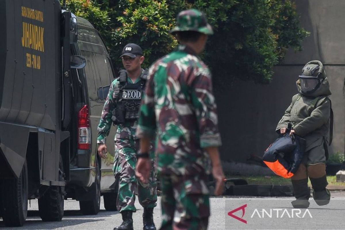 Personel Kompi Penjinak Bahan Peledak (Jihandak) Zeni TNI AD mengevakuasi material diduga sisa bahan peledak dan amunisi dampak dari ledakan Gudang Munisi Daerah (Gudmurah) Kodam Jaya Ciangsana yang terlempar hingga perumahan Cluster Visalia di Perumahan Kota Wisata, Gunung Putri, Kabupaten Bogor, Jawa Barat, Minggu (31/3/2024). Penyisiran tersebut bertujuan meminimalisir serpihan sisa ledakan agar tidak membahayakan warga. BERITA CALEG FOTO/Aditya Pradana Putra/Spt.