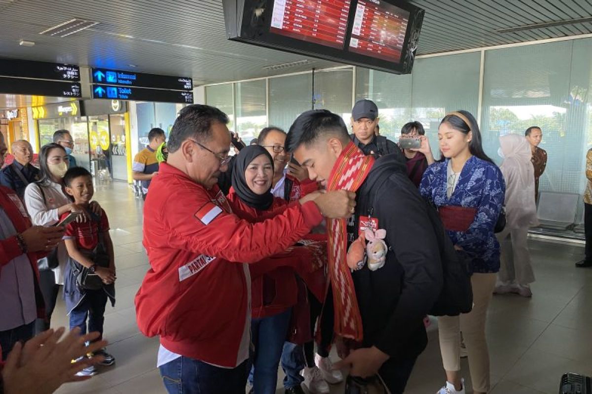 Pantauan BERITA CALEG, Kaesang beserta istri, Erina Gudono, dan rombongan PSI lainnya tiba di Bandar Udara Internasional Supadio pada pukul 09.21 WIB.