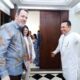Menhan RI sekaligus calon presiden terpilih Prabowo Subianto membuka pintu rumahnya di Jalan Kertanegara Nomor 4, Jakarta, Rabu, untuk kegiatan halalbihalal yang dihadiri sebagian besar jajaran pejabat pemerintahan.