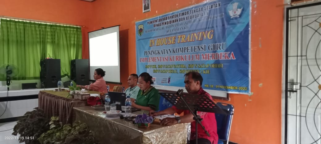 SUARA TTS.COM | SOE – Lima Sekolah yang  tergabung dalam Musyawarah Guru Mata Pelajaran (MGMP) Kelompok XIX, Kecamatan KiE melaksanakan IHT (In House Training) yang berlangsung di Ruang Rapat SMP Negeri KiE, mulai tanggal 18-19 November 2022.