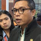 Sekretaris Jenderal Partai Gerindra Ahmad Muzani di Gedung DPRD, Cibinong, Kabupaten Bogor, Jawa Barat, Selasa (10/10/2023). (BERITA CALEG/M Fikri Setiawan)