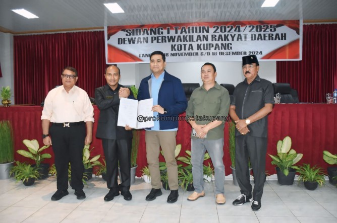 Penetapan ditandai dengan penandatanganan berita acara oleh Penjabat Wali Kota Kupang, Linus Lusi, S.Pd., M.Pd bersama Ketua DPRD Kota Kupang, Richard Elvis Odja dan para Wakil Ketua DPRD Kota Kupang di Ruang Sidang Utama DPRD Kota Kupang, Sabtu (30/11/24).