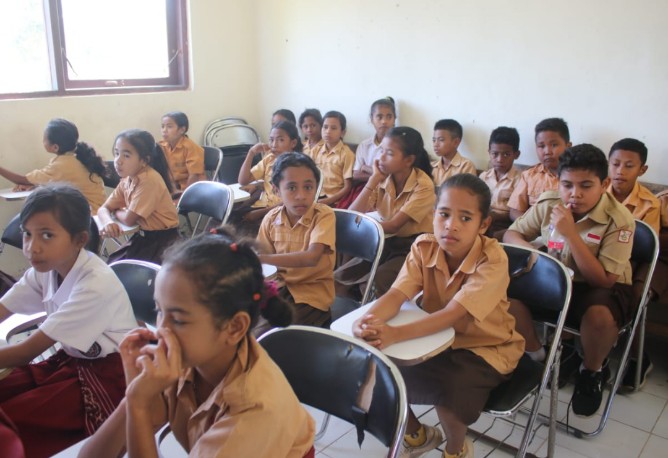 Kepada anak-anak SDN Buraen I, Alexon Lumba berpesan agar selalu tekun belajar agar dapat menggapai cita-cita.