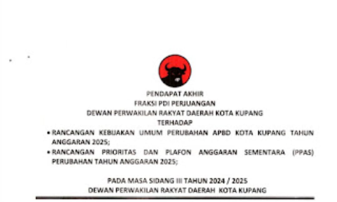 Kupangonline.com.Kupang– Fraksi PDI Perjuangan DPRD Kota Kupang resmi menerima Rancangan Perubahan APBD 2025 dan Prioritas Plafon Anggaran Sementara (PPAS), namun dengan sejumlah catatan penting yang wajib diperhatikan pemerintah.
