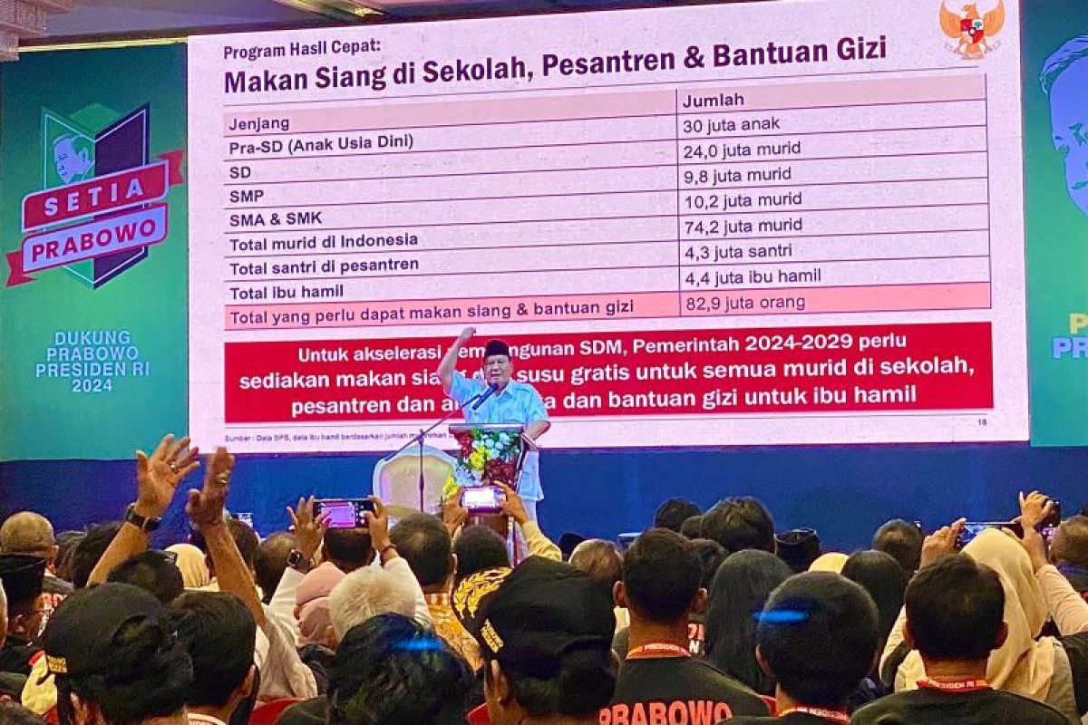 Program makan siang gratis di sekolah, pesantren, serta bantuan gizi tersebut merupakan satu dari program Hasil Cepat 2024-2029 yang digagas Prabowo.