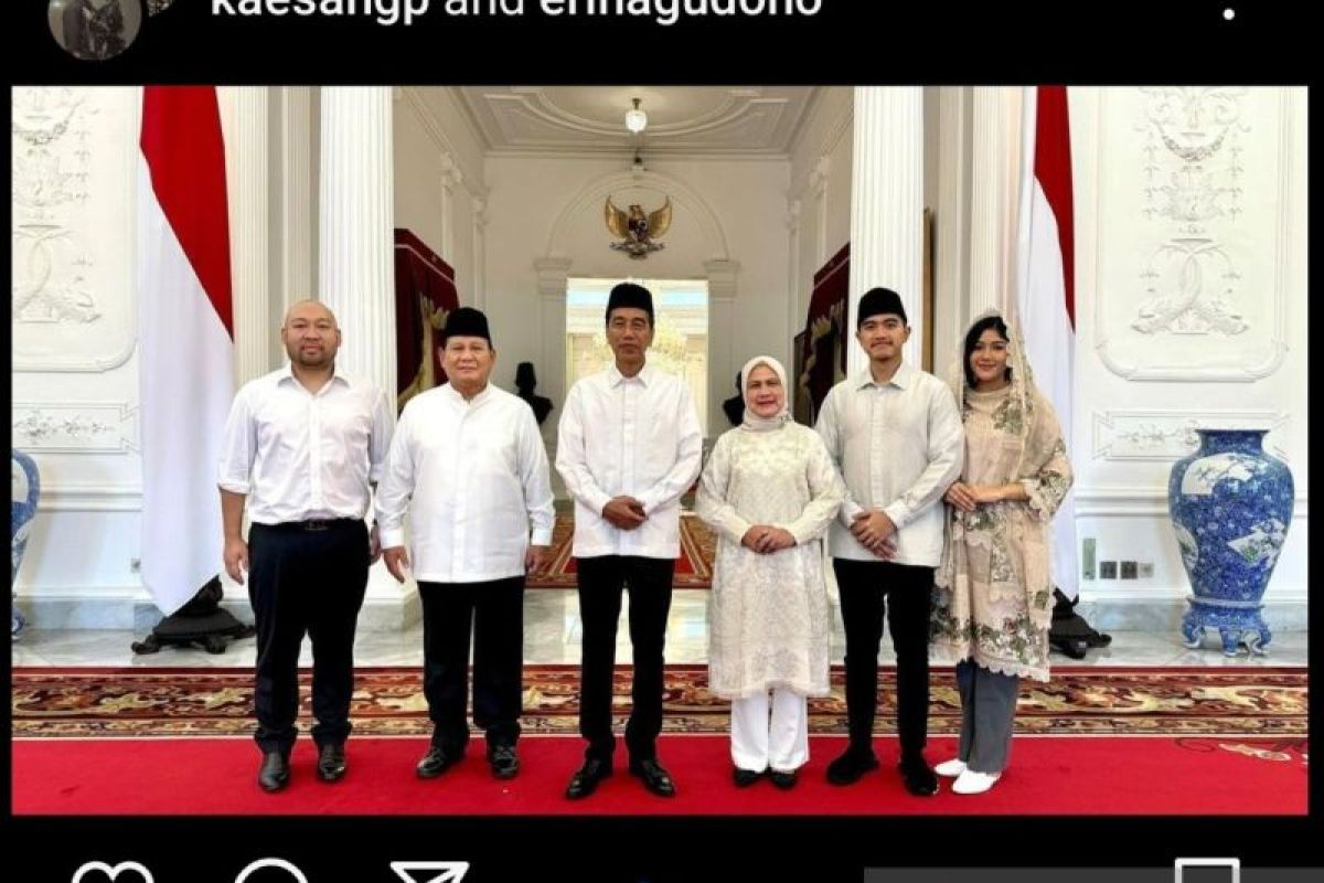 Dalam akun media sosialnya, Kaesang mengunggah foto dirinya bersama istri Erina Gudono berfoto dengan Presiden Joko Widodo dan Ibu Negara Iriana Jokowi serta Prabowo Subianto dan Didit Hediprasetyo.