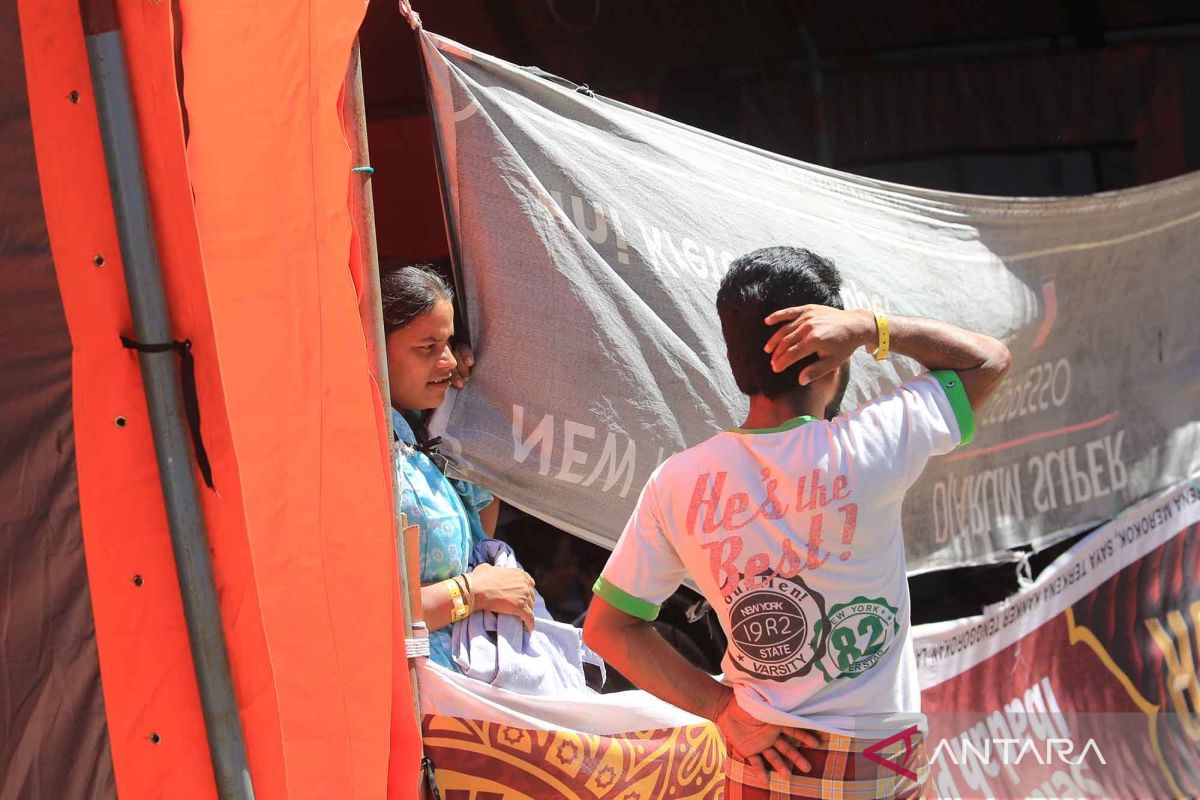 Pengungsi etnis Rohingya beraktivitas di tempat penampungan sementara di Kawasan belakang Kantor Bupati Aceh Barat, Aceh, Sabtu (13/4/2024). Sebanyak 21 orang pengungsi Rohingya yang terdiri dari 14 orang pengungsi Rohingya yang menempati penampungan sementara di Idi Sport Center (ISC) Kabupaten Aceh Timur dan 7 orang pengungsi Rohingya yang menempati penampungan di belakang kantor Bupati Kabupaten Aceh Barat melarikan diri dari tempat penampungan sementara. BERITA CALEG FOTO/Syifa Yulinnas/nym.