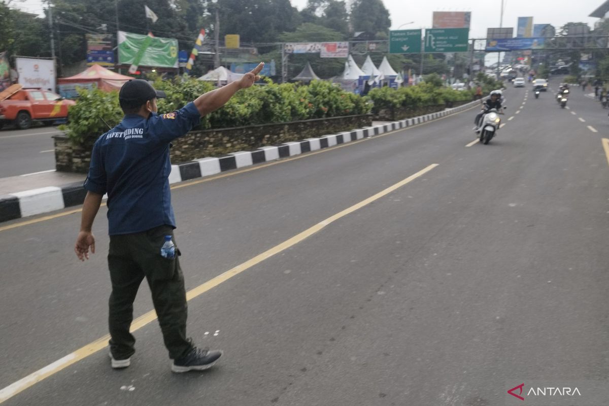 Ketika ada sepeda motor yang terkecoh, para relawan dari komunitas tersebut pun memberhentikan motor tersebut dan mengarahkannya untuk masuk kembali ke jalur arteri menuju Ciawi.