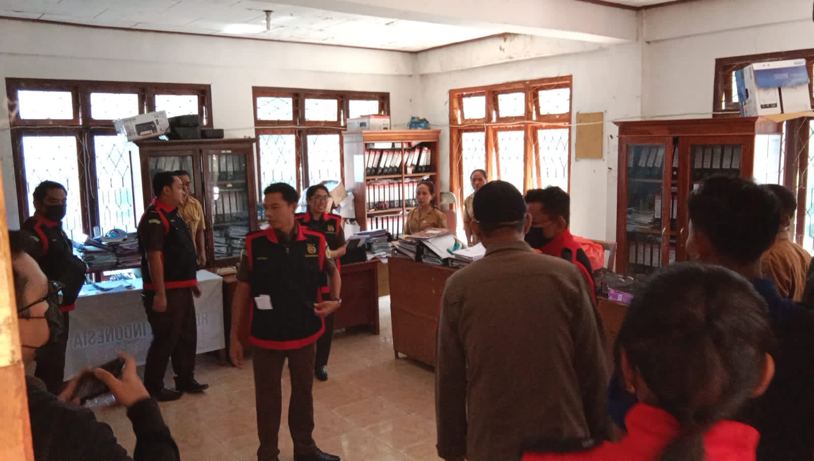 Terpantau langsung, 10 orang petugas Kejari Mabar mengenakan rompi hitam sedang menggeledah ruangan Bendahara Dinas PKO Kabupaten Manggarai Barat.
