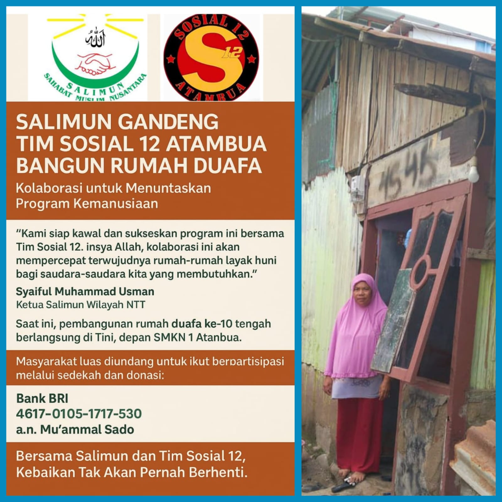 Kupangonline.com-Atambua – Dalam upaya memperkuat gerakan sosial kemanusiaan, Salimun (Sahabat Muslim Nusantara) resmi menjalin kolaborasi dengan Tim Sosial 12 Atambua dalam program pembangunan rumah duafa/fakir miskin di Kabupaten Belu, NTT.
