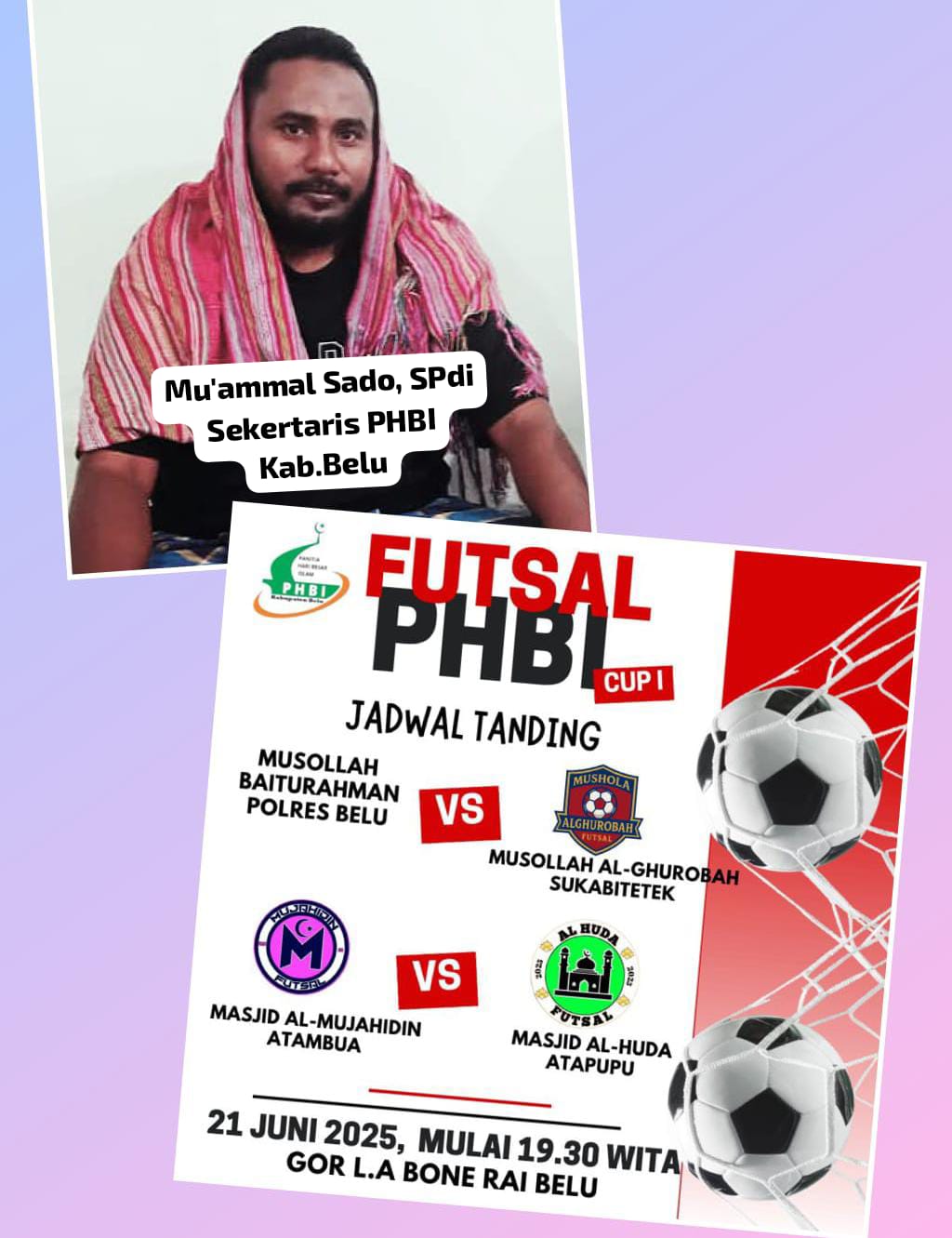 “Turnamen ini bukan sekadar kompetisi, tetapi juga menjadi wadah membangun ukhuwah antar sesama pemuda Muslim. Semangat kebersamaan dan nilai sportivitas menjadi ruh dari kegiatan ini,” ungkap Mu’ammal Sado, S.Pd.I, Sekretaris PHBI Kabupaten Belu.