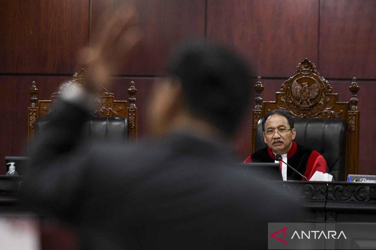Ketua Mahakamah Konstitusi (MK) Suhartoyo mendengarkan keterangan ahli pada sidang lanjutan sengketa hasil Pilpres 2024 di Mahkamah Konstitusi, Jakarta, Kamis (4/4/2024). Sidang lanjutan tersebut beragendakan pembuktian dari pihak terkait yakni tim pembela pasangan calon presiden dan wakil presiden nomor urut 2 Prabowo-Gibran dengan menghadirkan delapan ahli dan enam saksi. BERITA CALEG FOTO/Hafidz Mubarak A/YU