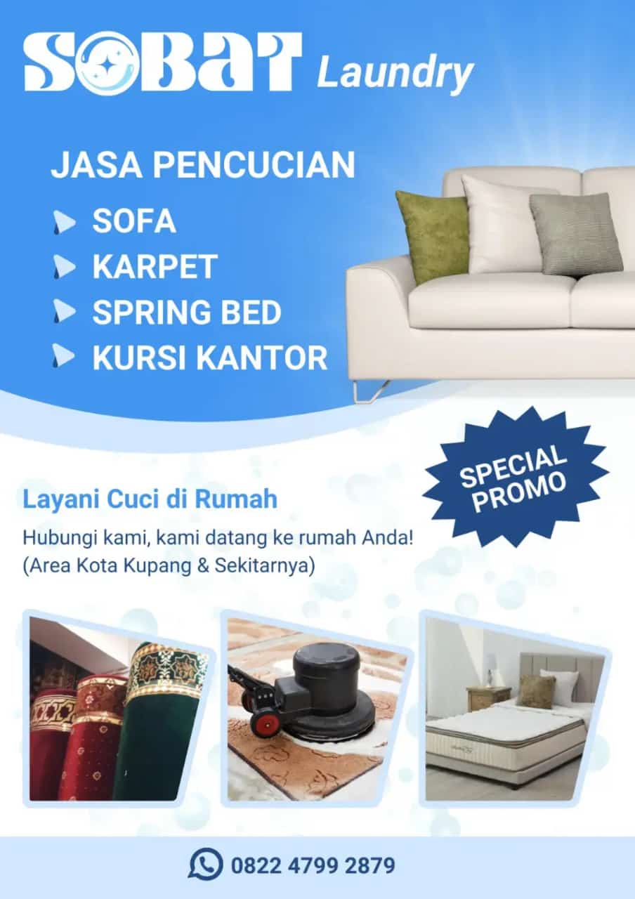 Kupangonline.com-Kupang – Muhammad Safir, seorang mahasiswa yang kini menjalankan usaha laundry khusus untuk pencucian sofa, spring bed, bed cover, karpet, serta interior dan tempat duduk mobil, menjadi contoh nyata bagaimana semangat kerja keras dapat menghasilkan. Dengan nama usaha “Sobat Londri”, layanan ini hadir dengan harga terjangkau dan pendapatan per bulan yang berkisar antara Rp400.000 hingga Rp500.000. Layanan ini dapat diakses melalui kontak 082247992879.