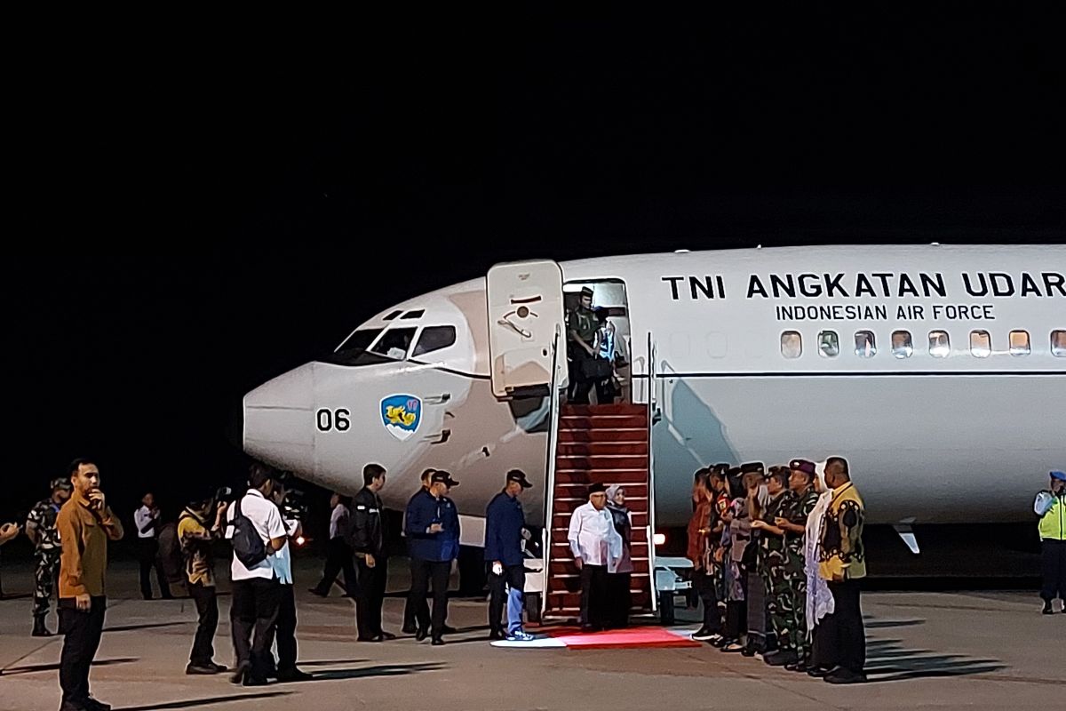 Sebelumnya, Wapres menempuh perjalanan udara sekitar 3 jam 25 menit dari Pangkalan Udara TNI AU Sultan Hasanuddin Makassar, Sulawesi Selatan.